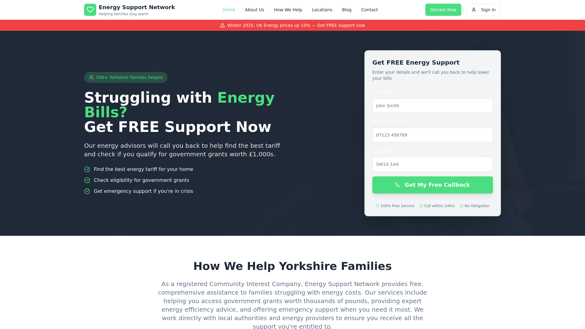 Helps families reduce energy bills and combat fuel poverty by providing access to grants, workshops, and emergency support across Yorkshire.